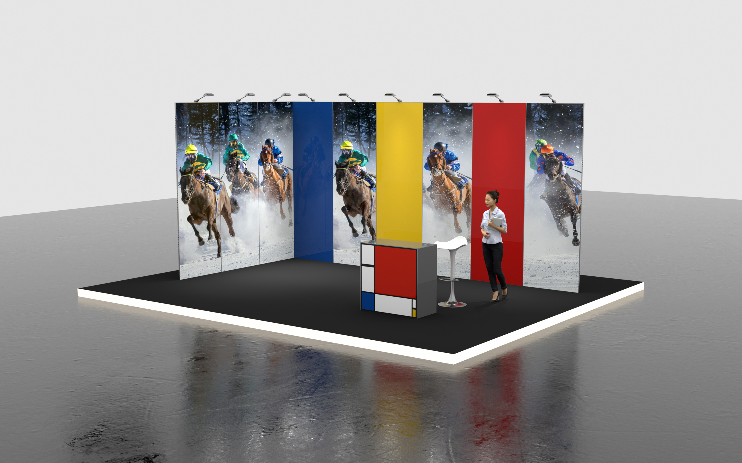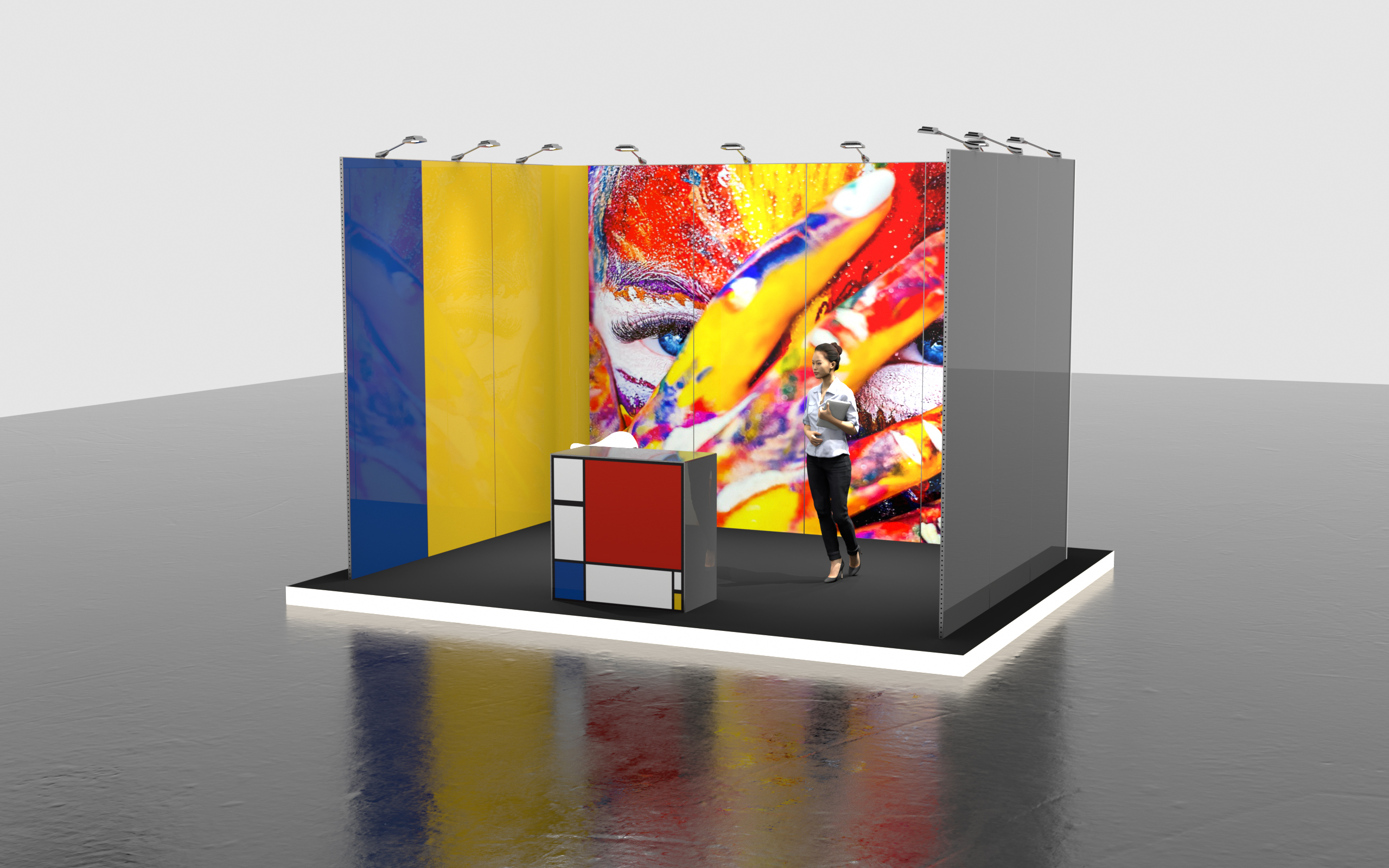 Easy Frames-Messewände sind eine moderne Ausstellungslösung. Sie bieten eine hervorragende Möglichkeit, Ihre Marke oder Ihr Produkt zu präsentieren und sich abzuheben. Die hohe Verarbeitungsqualität der Wände verleiht dem Stand ein professionelles Erscheinungsbild und trägt positiv zum Unternehmensimage bei. Diese Stände sind zur Selbstmontage geeignet.