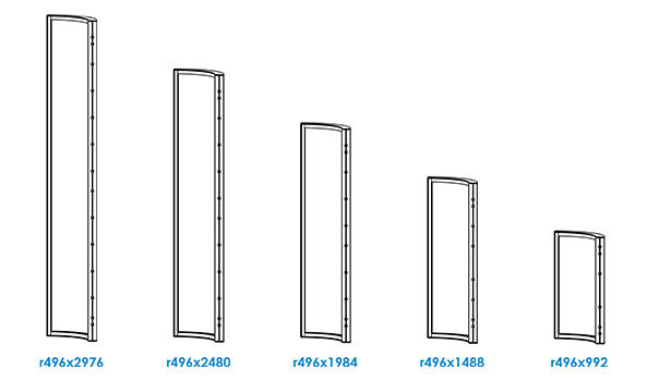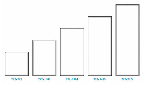 Basic Easy Frames Rahmen mit Löchern rundherum. Die Füllung kann entweder aus Textilgewebe oder einer beidseitigen Grafikplatte bestehen. Es stehen 2 Rahmenvarianten mit den Breiten 496 mm und 992 mm zur Verfügung